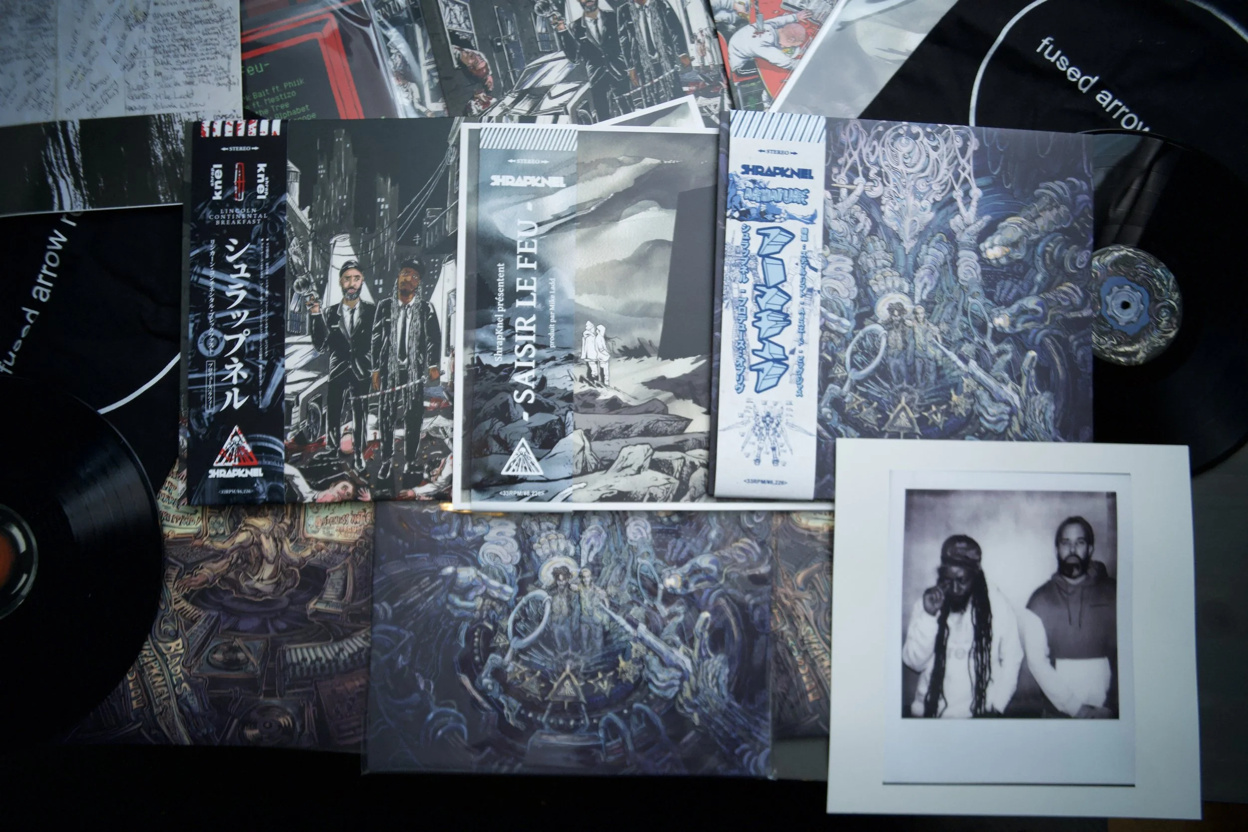 A lot of this was made possible because of ShrapKnel fans - without that support, all of this world building and cross pollination wouldn’t have been possible. As an offering of thanks, ShrapKnel forged foundry with fused arrow records to press up ALL 3 of these new albums onto wax.
